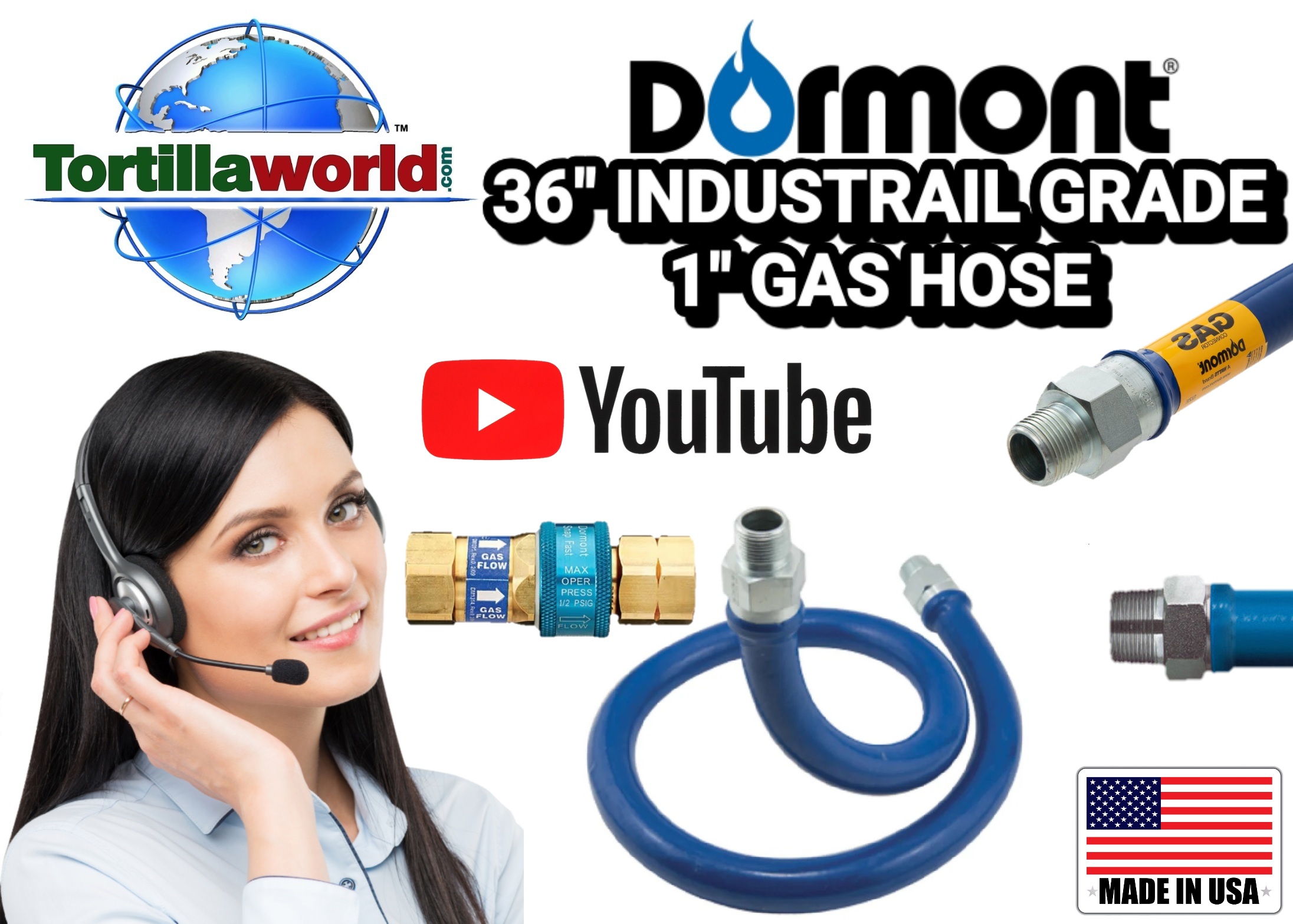 This is a commercial grade movable gas hose connector available from 24″ up to 72″ in length, composed of 301 stainless steel corrugated tube covered with a tight weave of stainless steel braid specifically engineered for caster mounted commercial cooking & tortilla Industry equipment like traditional corn cooking tubs, tortilla chips, tostadas and churrito basket style fryers etc.