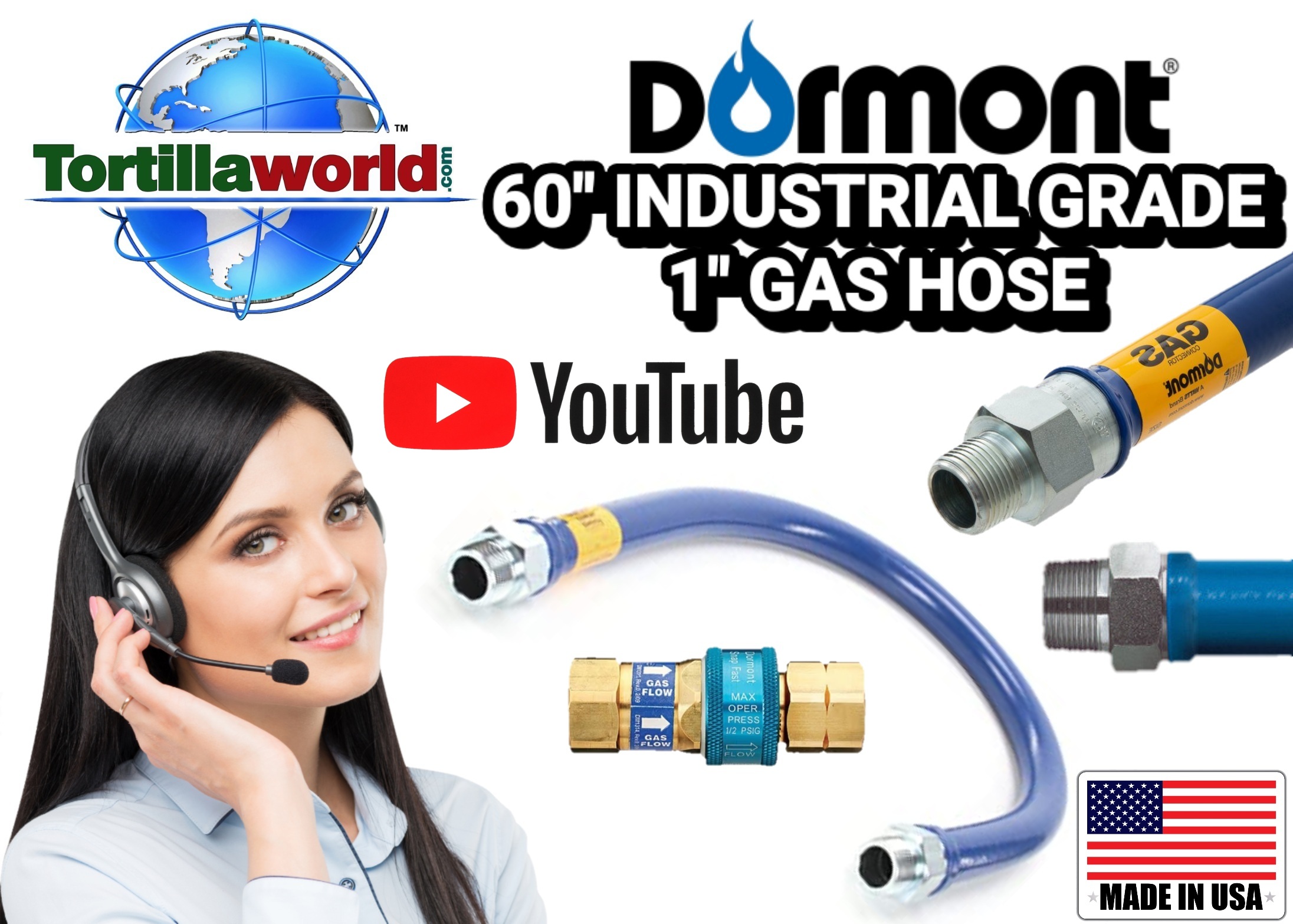 This is a commercial grade movable gas hose connector available from 24″ up to 72″ in length, composed of 301 stainless steel corrugated tube covered with a tight weave of stainless steel braid specifically engineered for caster mounted commercial cooking & tortilla Industry equipment like traditional corn cooking tubs, tortilla chips, tostadas and churrito basket style fryers