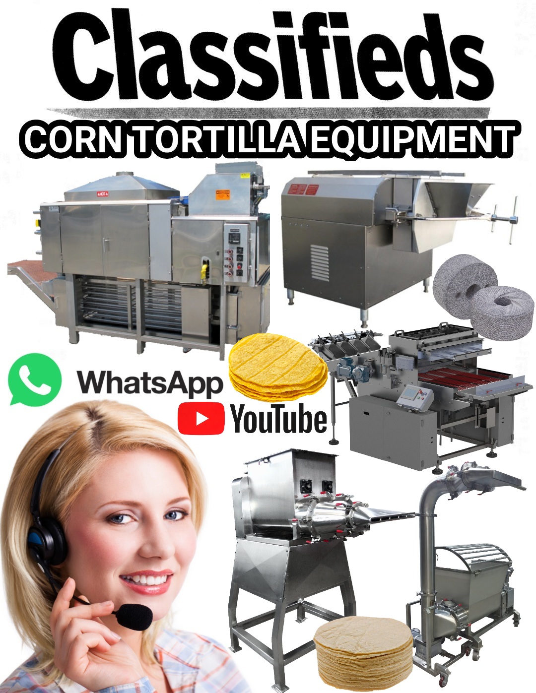 Tortillaworld.com ofrece la mayor selección de equipo hecho en los Estados Unidos, nuevo y semi-nuevo para fabricar tortillas y totopos incluyendo algunas marcas de renombre para fritura y envasado de totopos y la fabricación y envasado de equipos de producción de tortillas de maíz y de harina. Tambien vendemos maíz no transgenico, refacciones, conservadores y lubricantes de grado alimenticio y certificado kosher para tortillas de maíz y de harina que se utilizan en tortillerias, restauranes y mercados