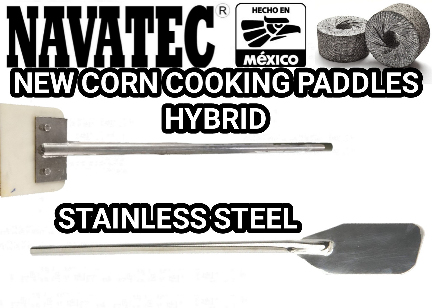 Navatec® stainless steel and/or Hybrid corn cooking paddle for steering your Nixtamal/corn while cooking in the traditional manual tubs. Simply & easy to use, helps you stir for a good even consistent cook every time