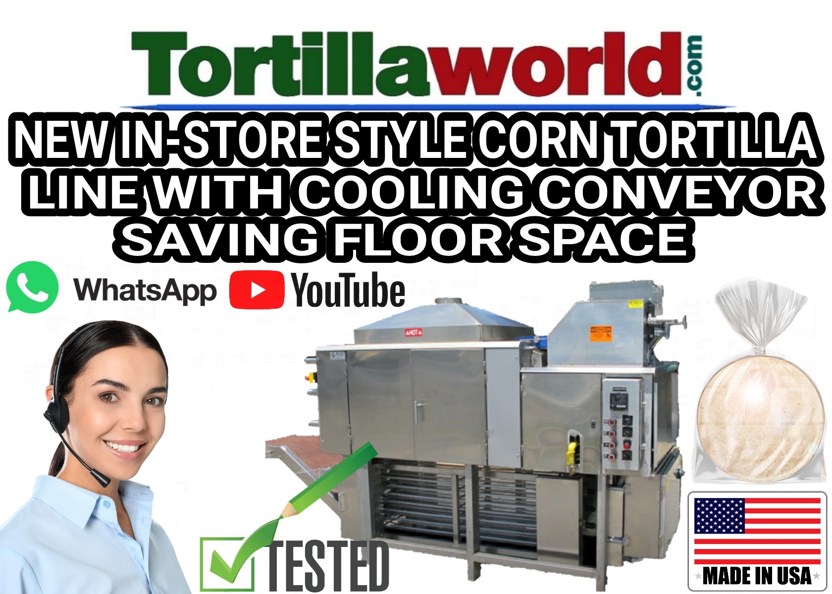 Follow us on all of our social media channels to receive our Tortillaworld exclusive at random flash sales on new & used tortilla & packaging equipment, replacement parts, Ingredients, lubricants and more