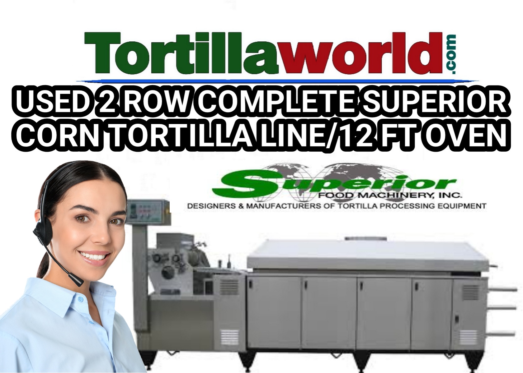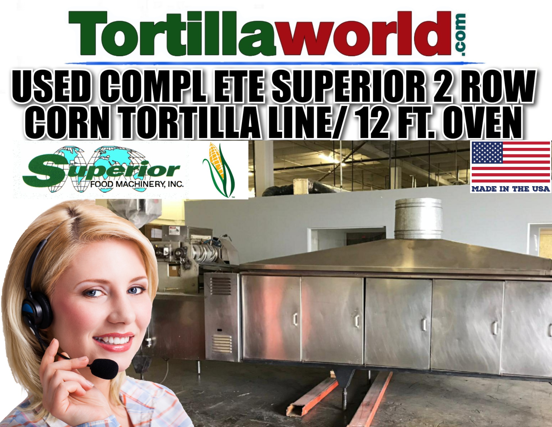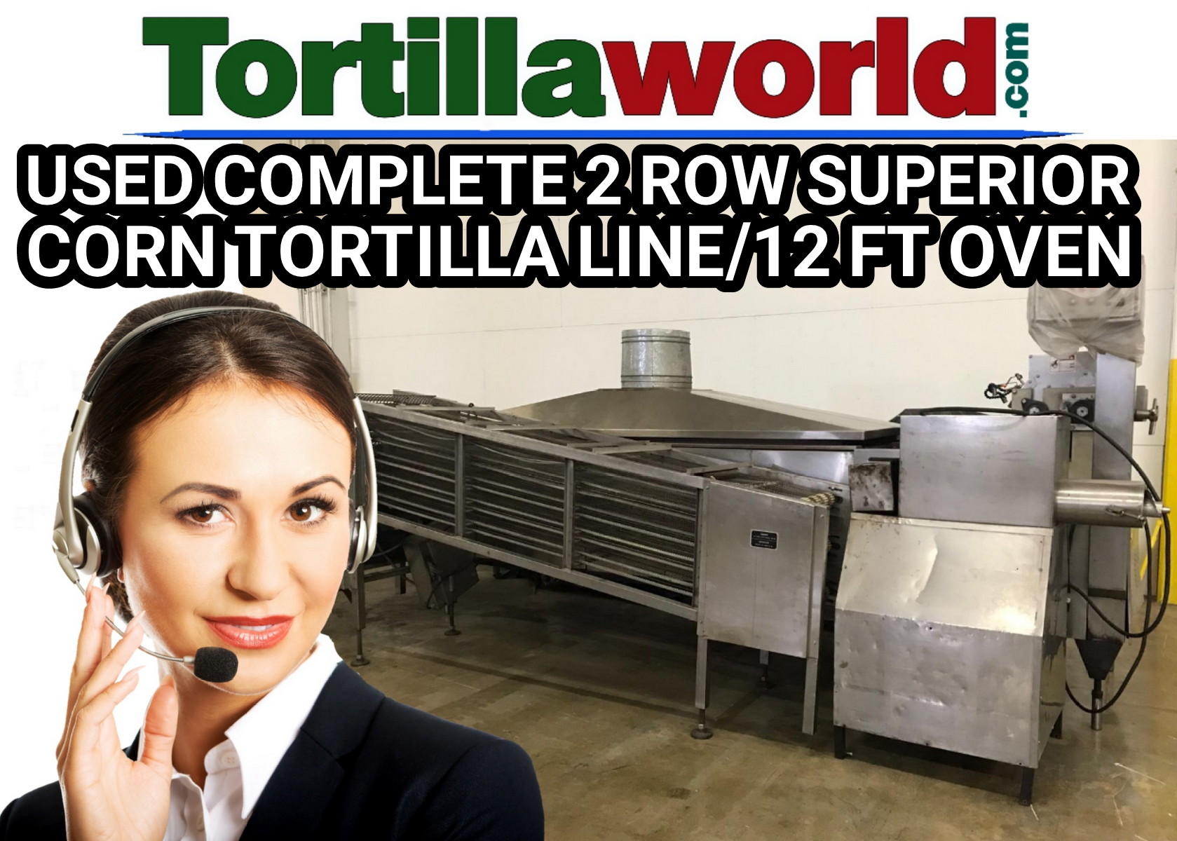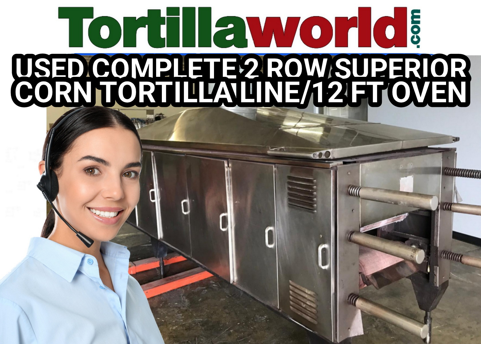 Used Superior complete 2 row corn tortilla line/12 ft. oven for sale as is