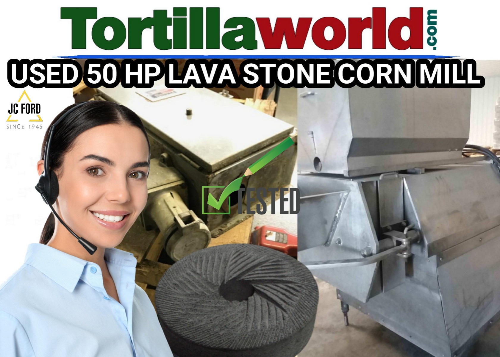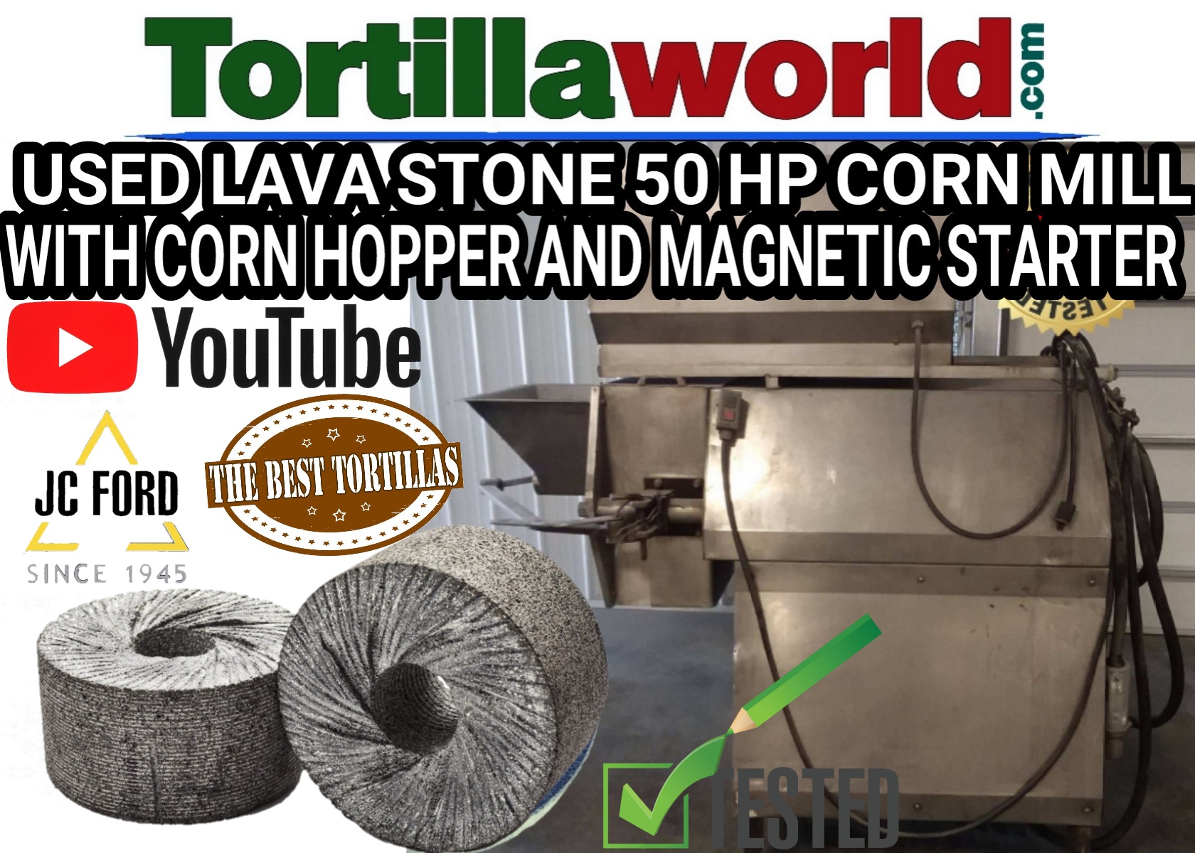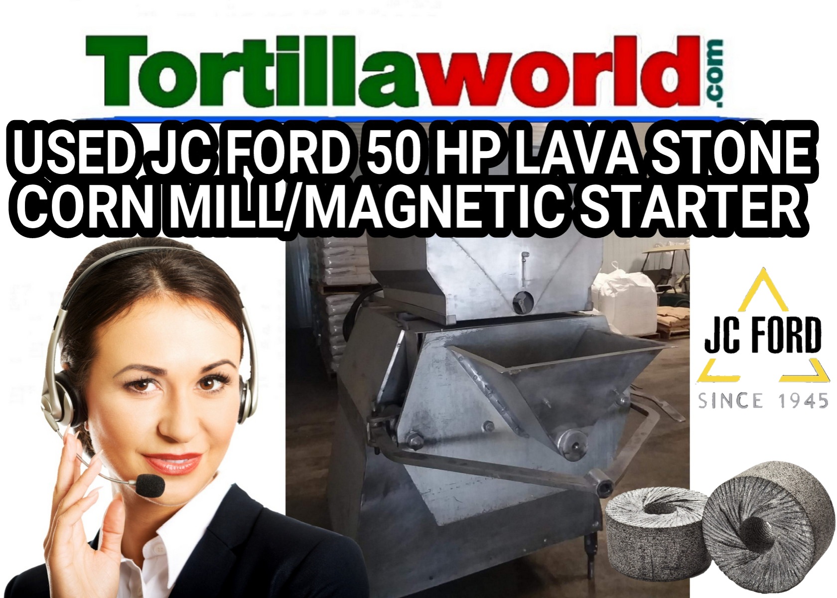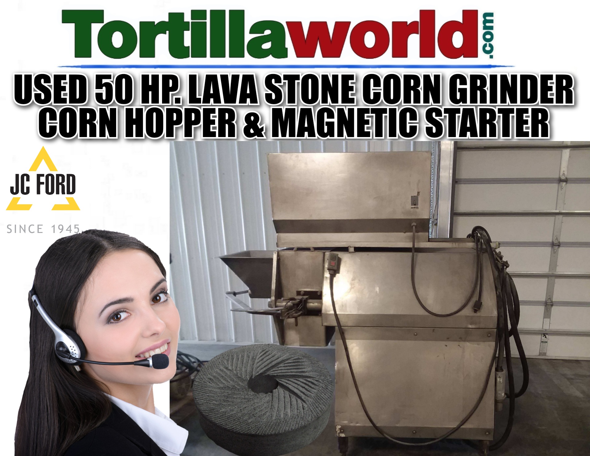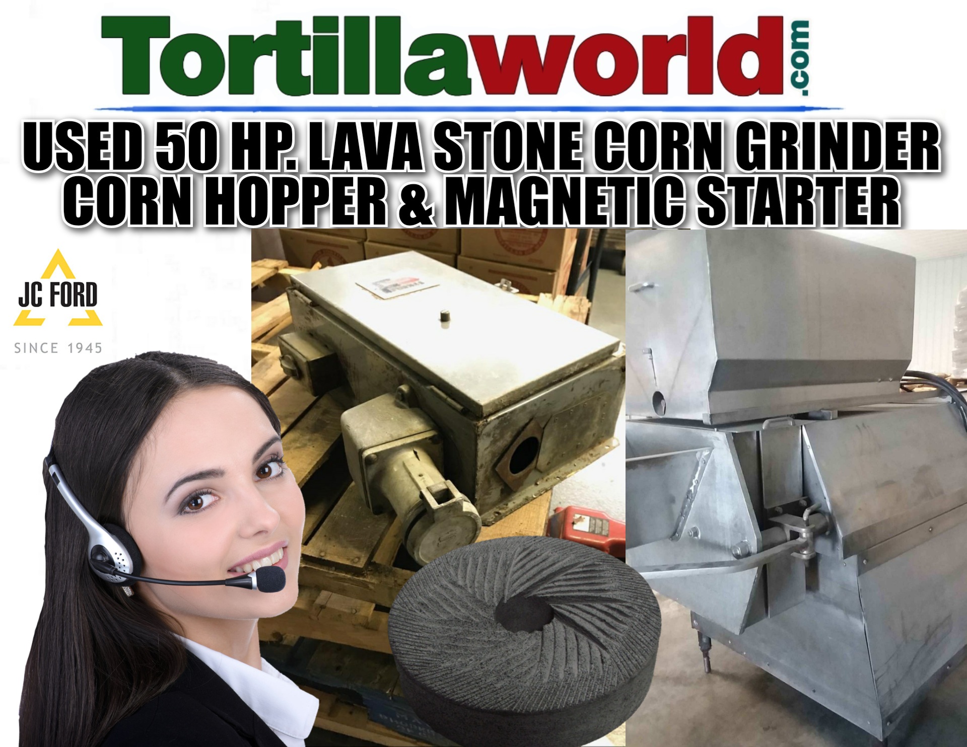 Used JC Ford 50 HP corn grinder, hopper & magnetic starter. Available for immediate sale