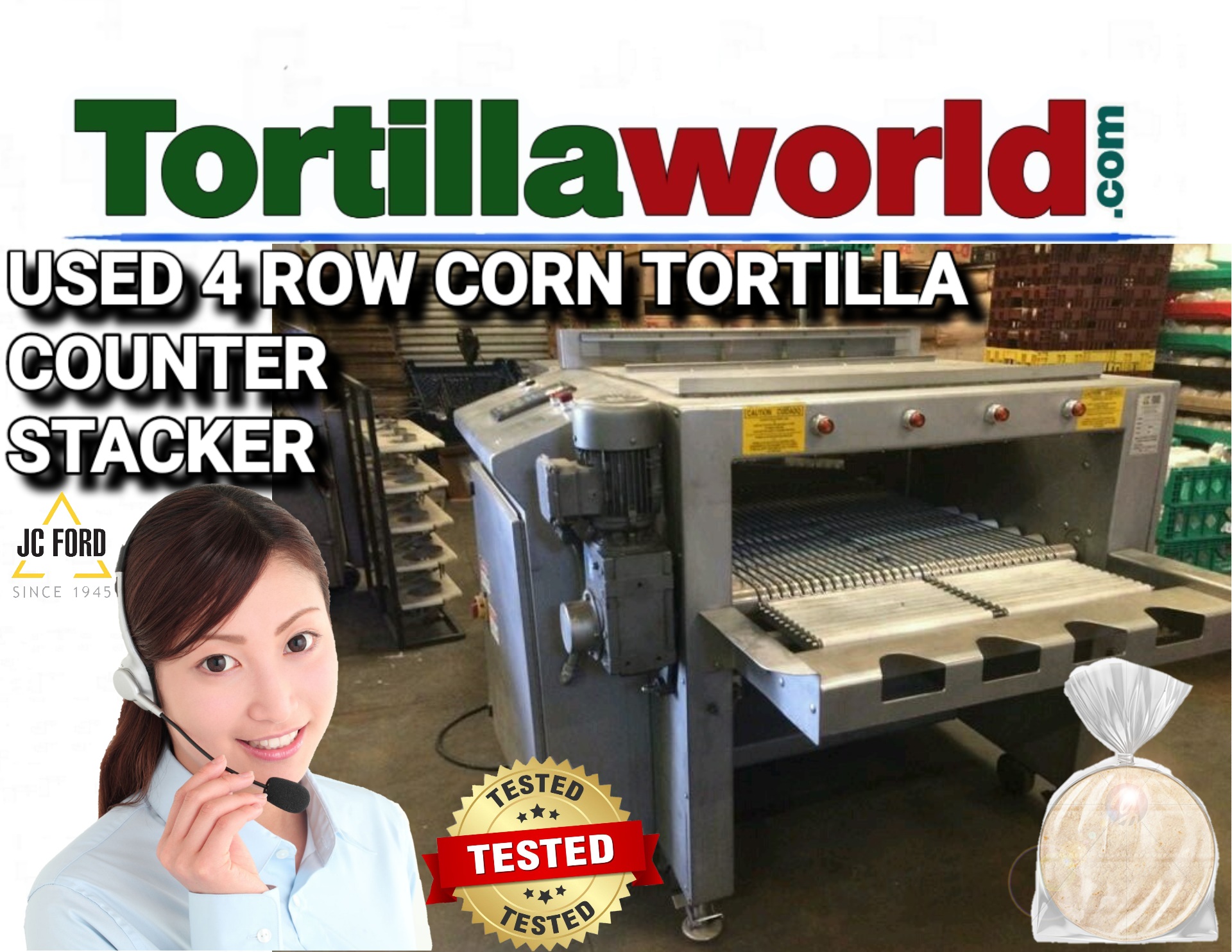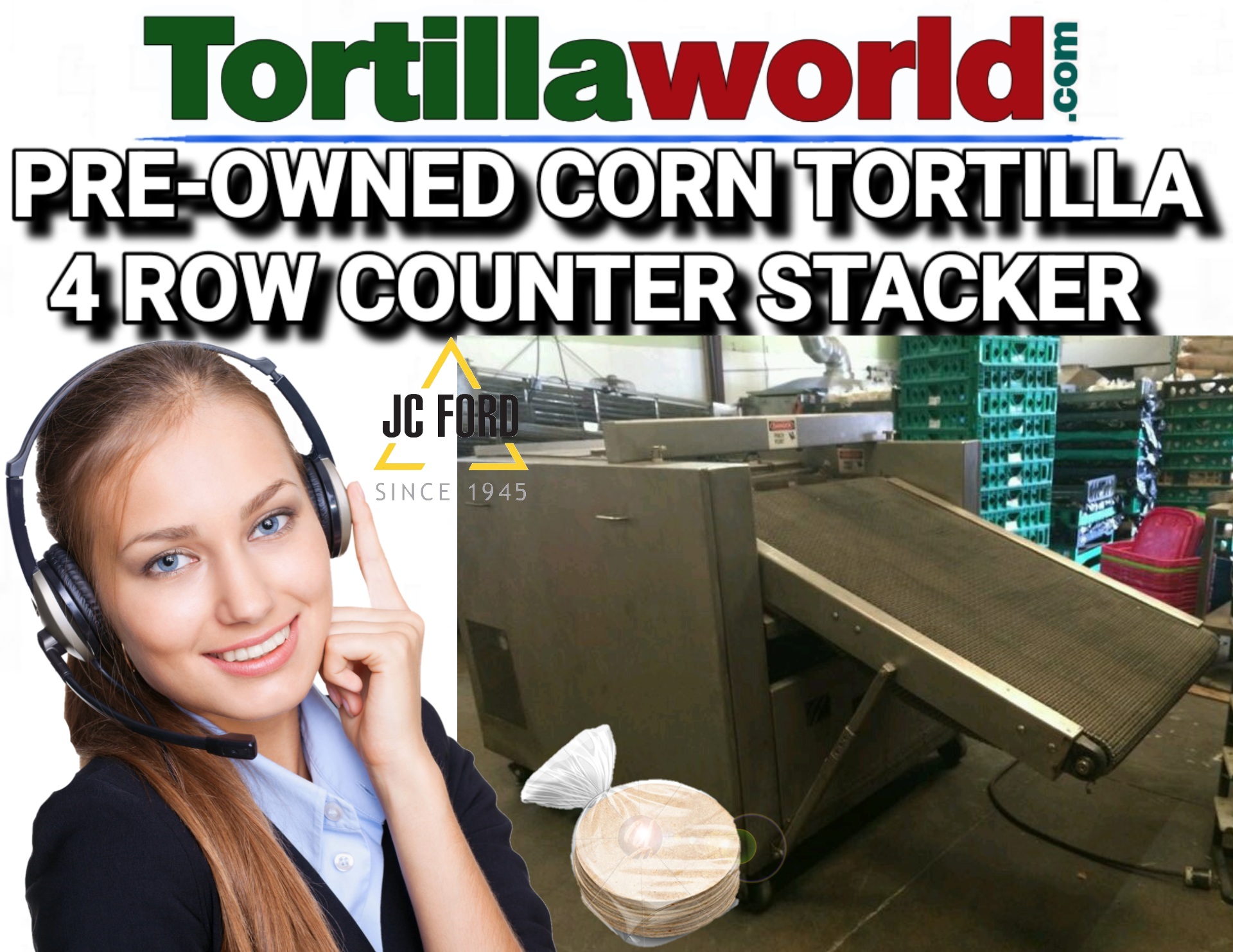 Used JC Ford late model 4 row corn tortilla counter stacker used approx. 1 year for sale