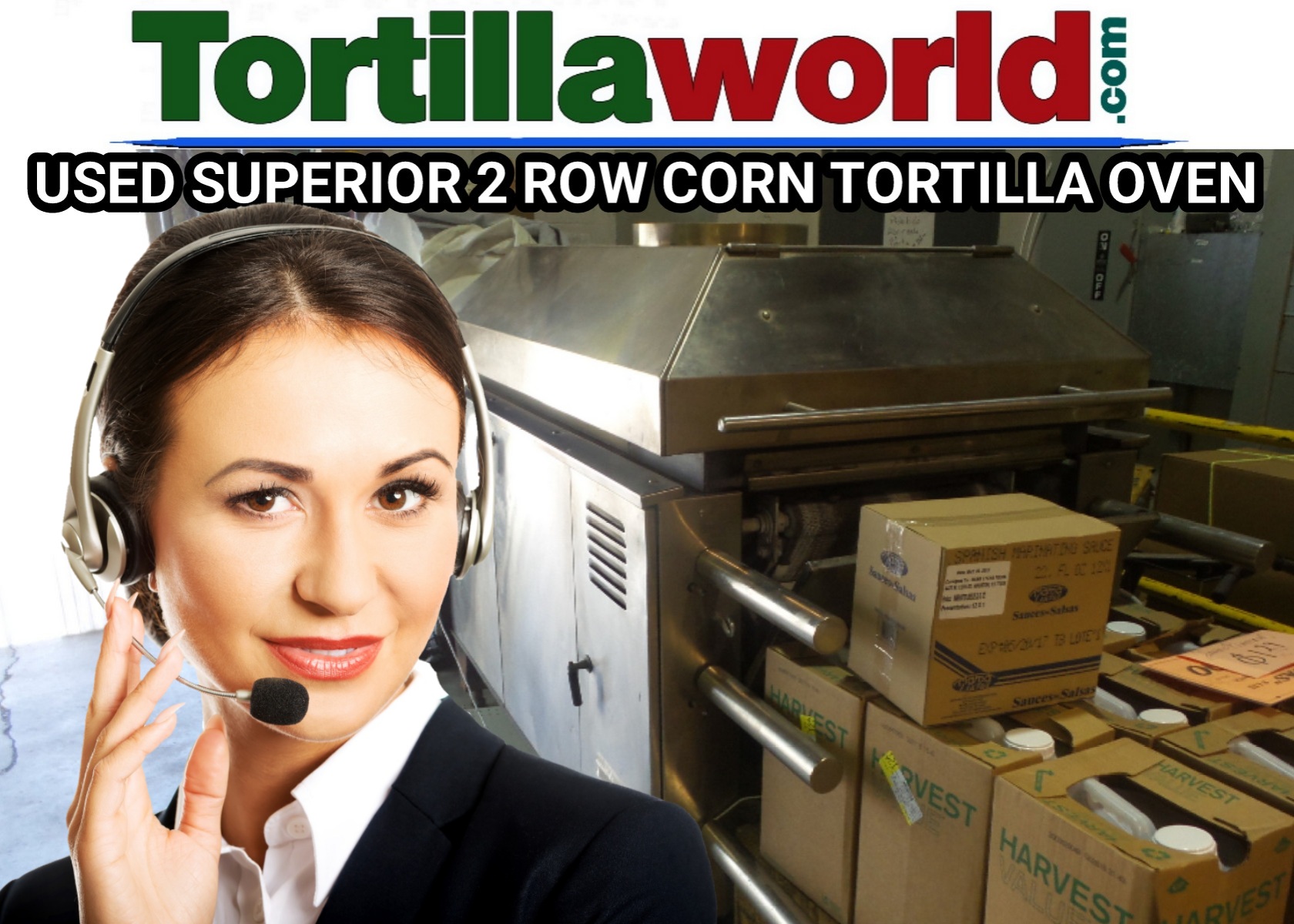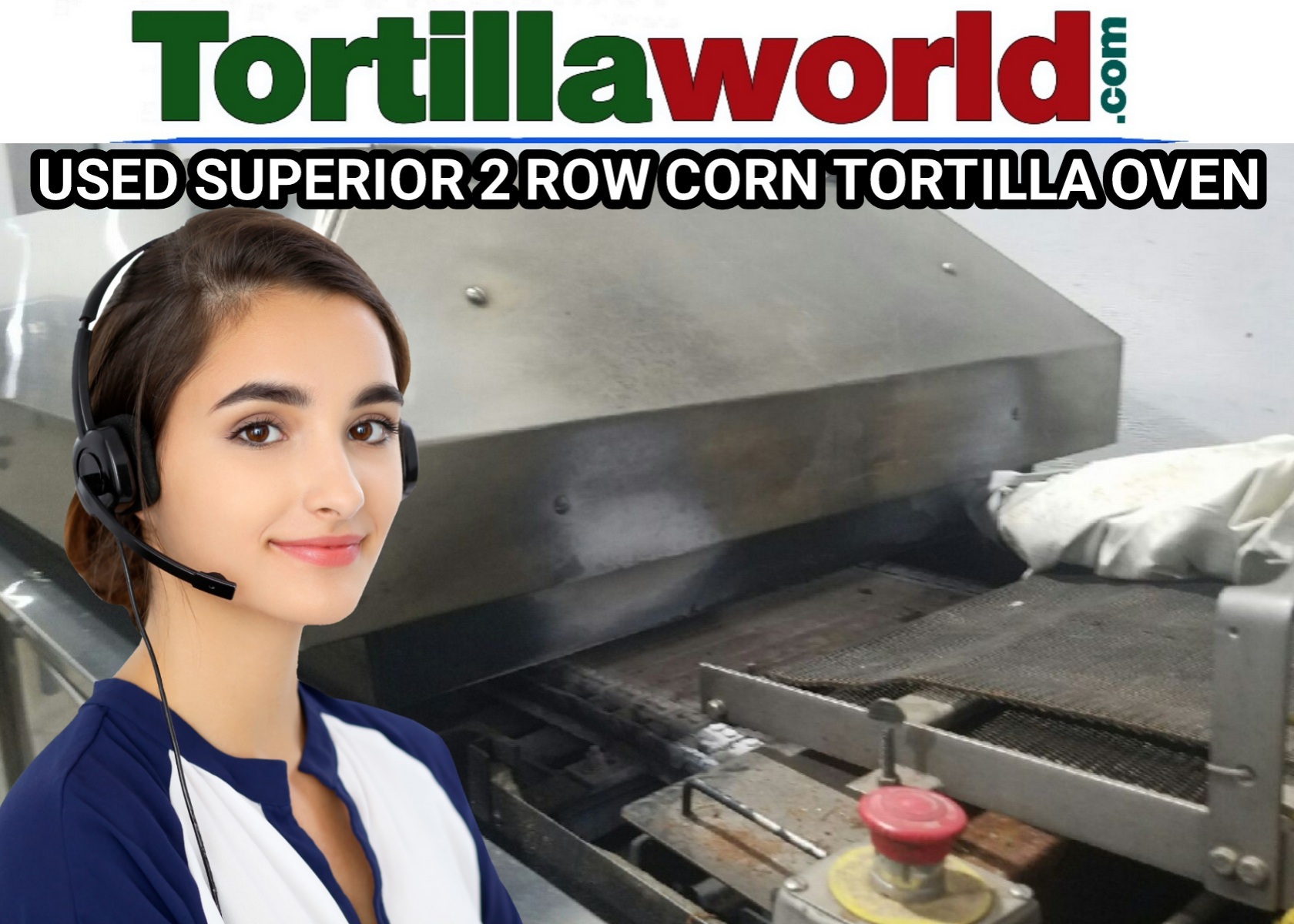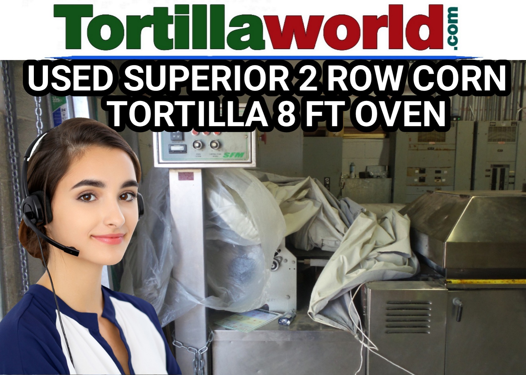 Used Superior 2 row corn tortilla 8 ft. oven only. Makes up to 350 dz. of soft table corn tortilla per hour. Good condition. It was used for 1 year in a super market until they purchased a bigger oven