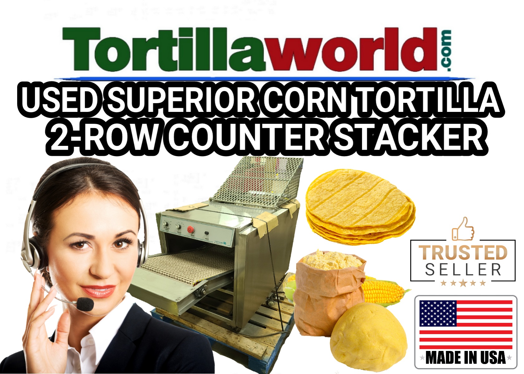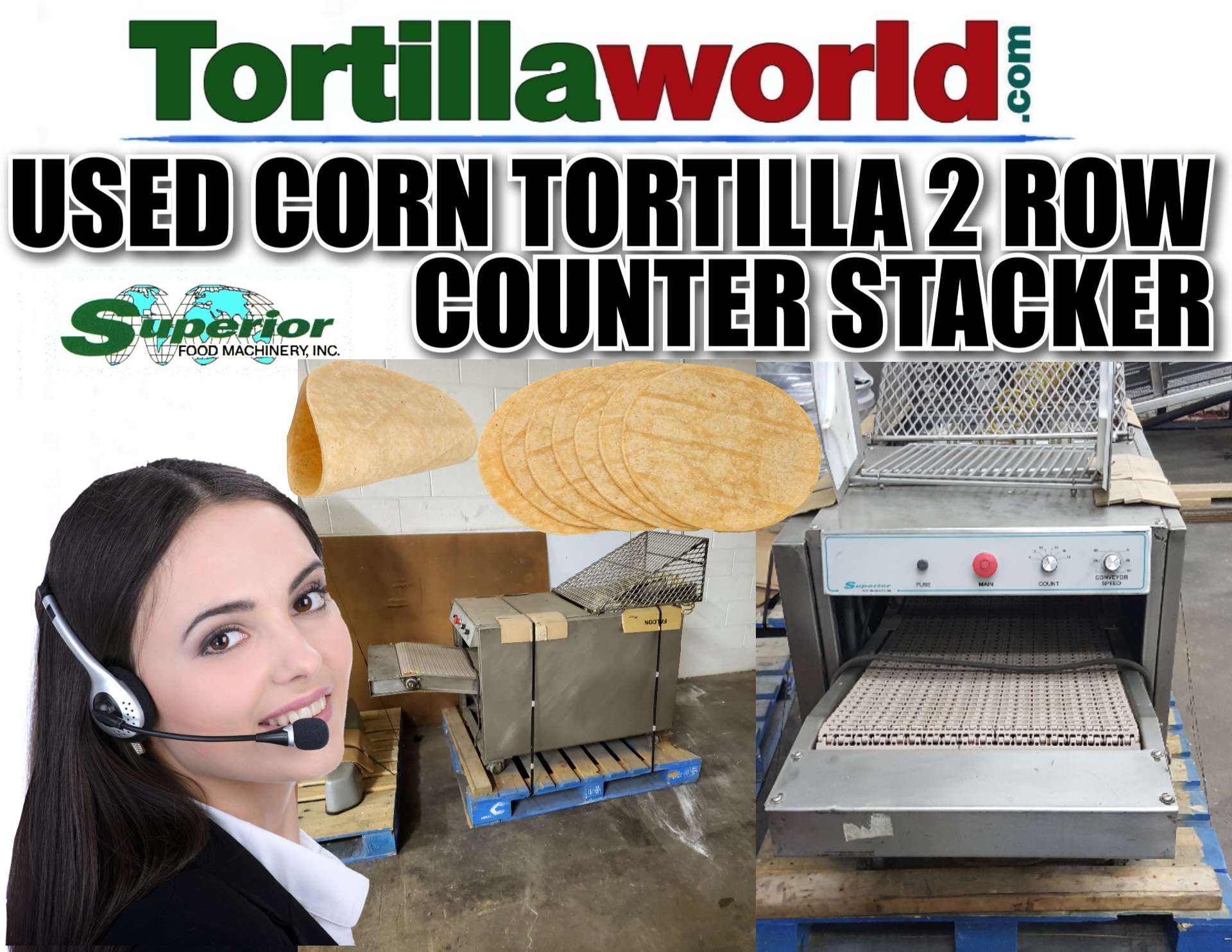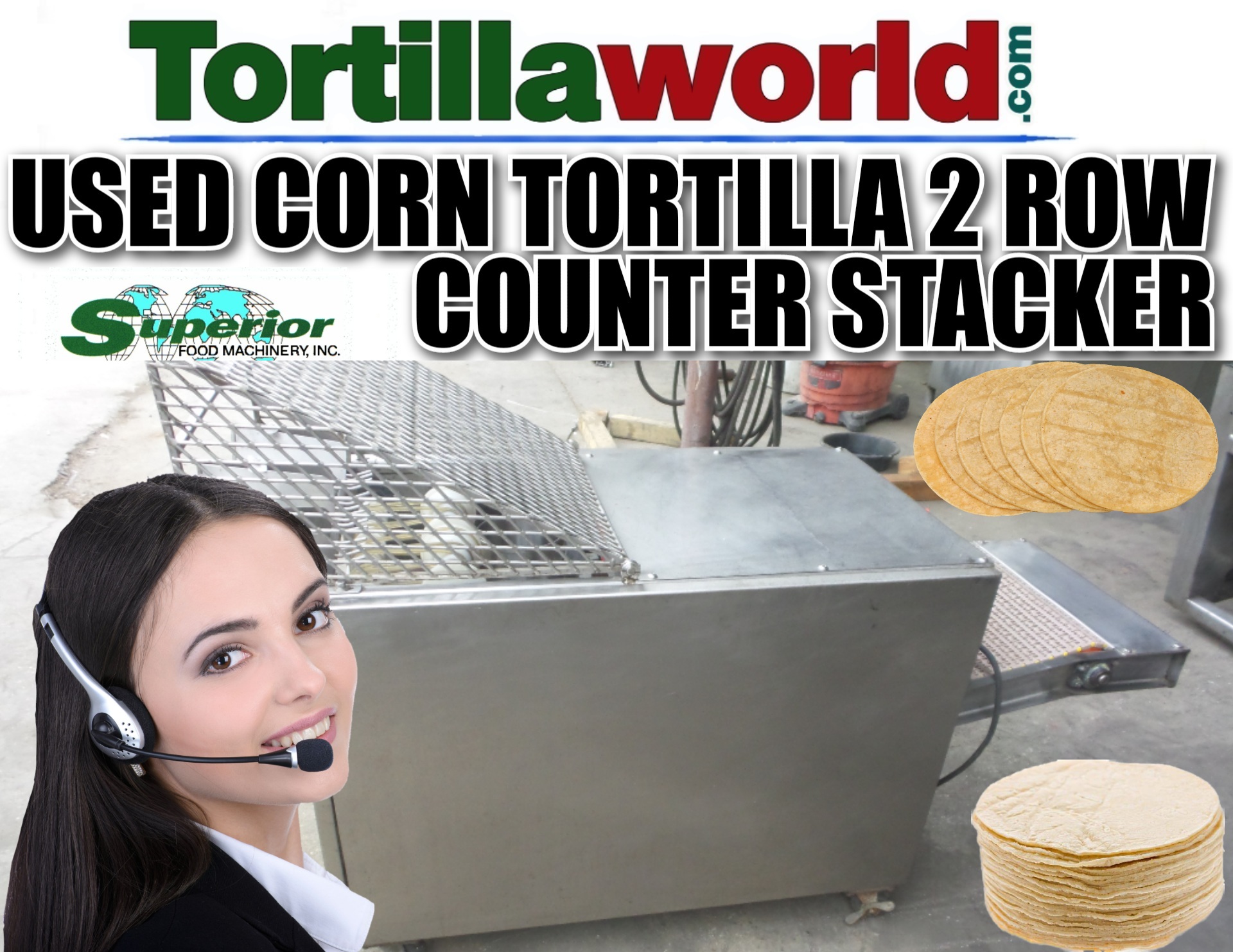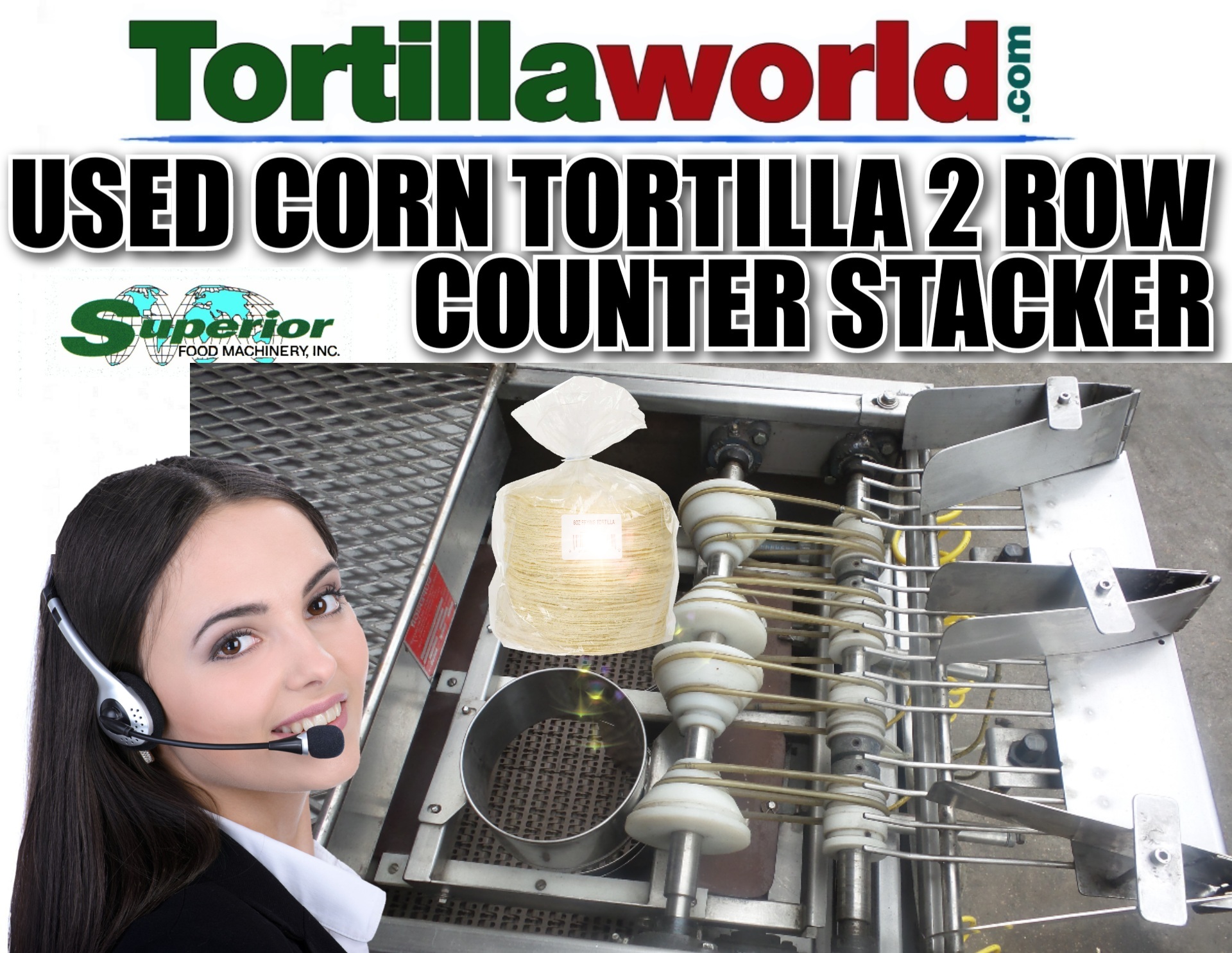 Used Superior 2 row corn tortilla counter stacker available for immediate sale